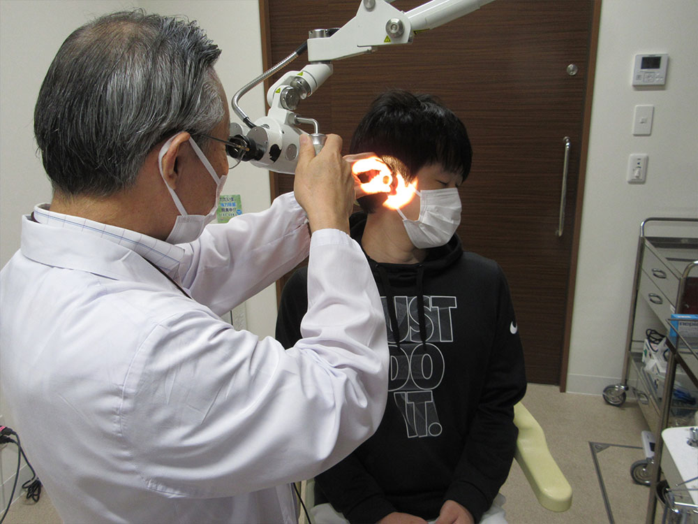 耳垢は鼓膜や外耳道の表皮が剥がれ、それに分泌液が混じって作られます。そして、食べ物をかんだりしゃべったりすると外耳道の一部が動いて外耳道にあるうぶ毛の働きで自然に外へ押し出されます。しかし、綿棒などで耳垢を取ろうとして、かえって外耳道の奥へ押し込んでしまうと耳垢栓塞になります。多くは吸引などで容易に除去できますが、硬く固まった場合は、耳垢を柔らかくする薬を2~3日点耳して取り除きます。